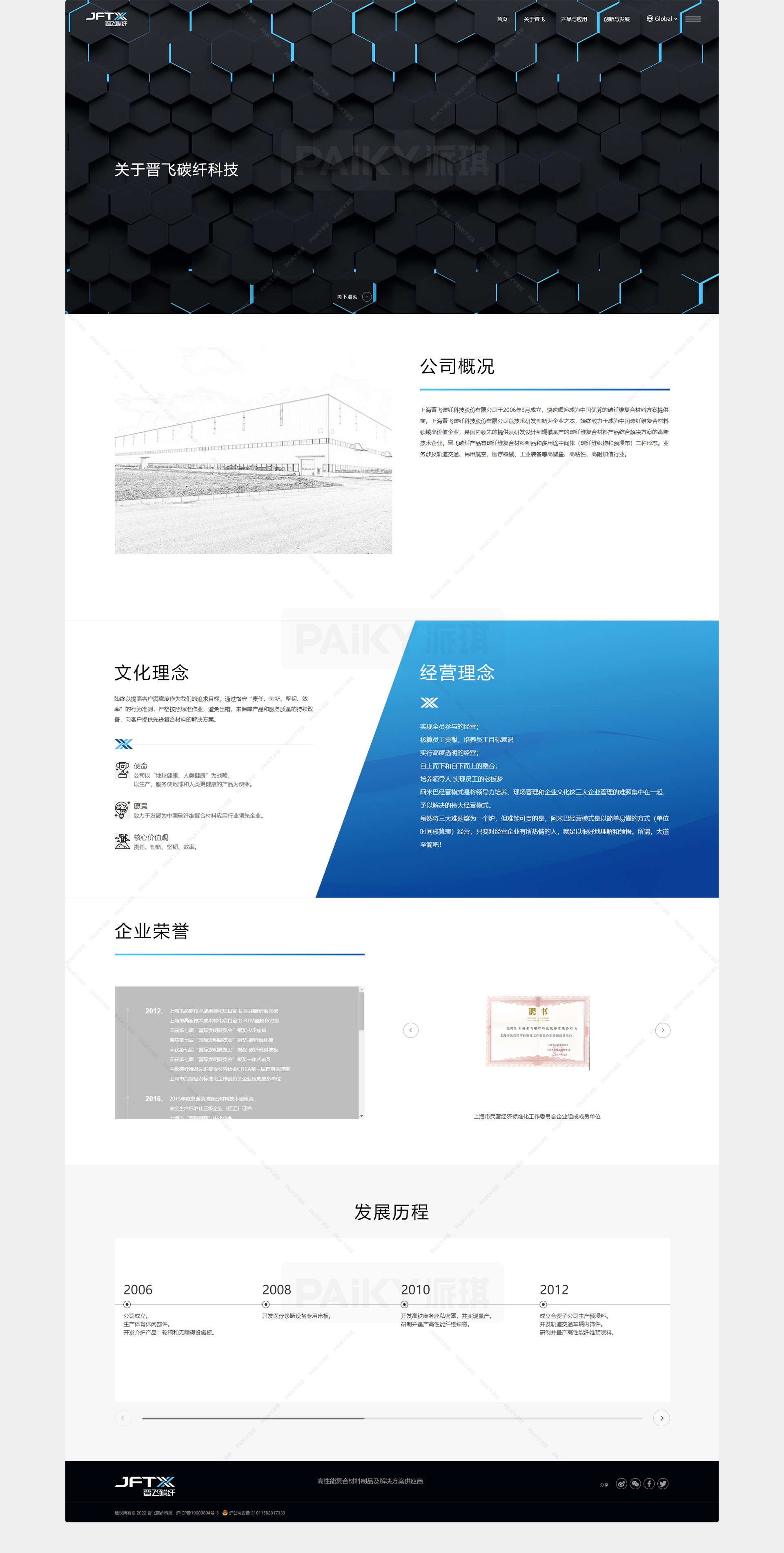 上海晉飛碳纖科技股份有限公司,中國頂尖碳纖維複合材料方案提供商,成立十年間公司不斷發展擴大,以技術的不斷創新為核心競爭力,驅動公司在行業內 保持領先優勢,目前以形成碳纖維原材料、碳纖維中間產品、碳纖維製品的全產業鏈集團。