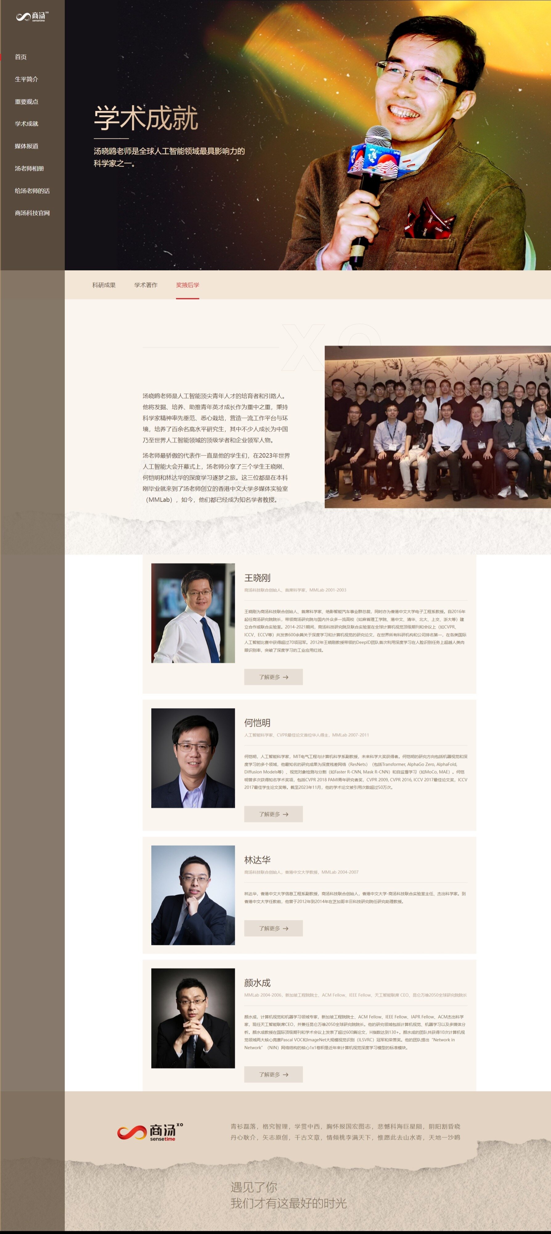 商湯科技的網站以鮮明的棕灰色為主色調,傳遞出活力與創新的品牌形象。輔以灰色、淡白色和棕色,平衡了整體的視覺感受。這種色彩搭配既體現了商湯科技在人工智能領域的領先地位和前瞻視野,又彰顯了其深厚的技術底蘊和務實的工作態度。