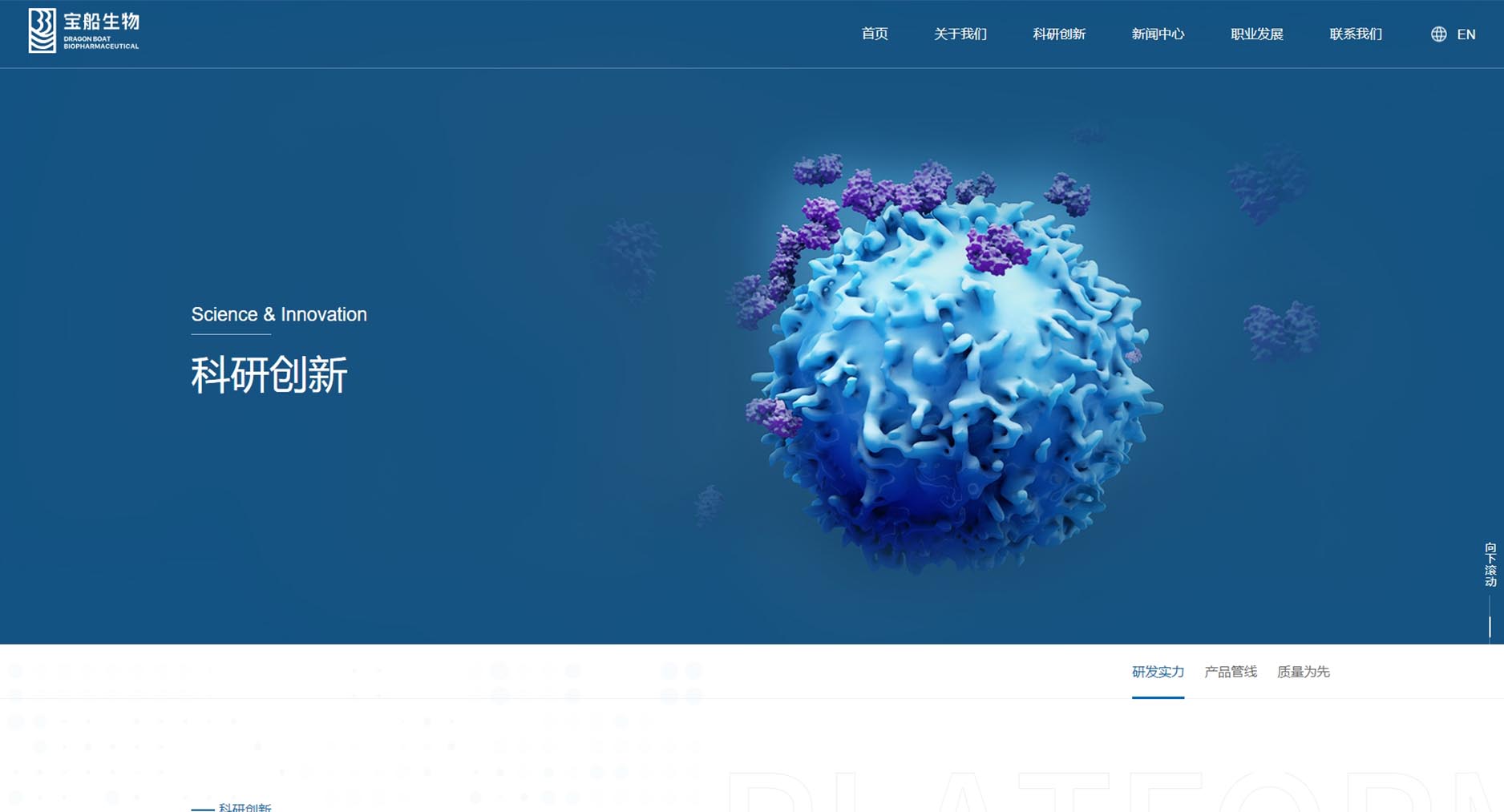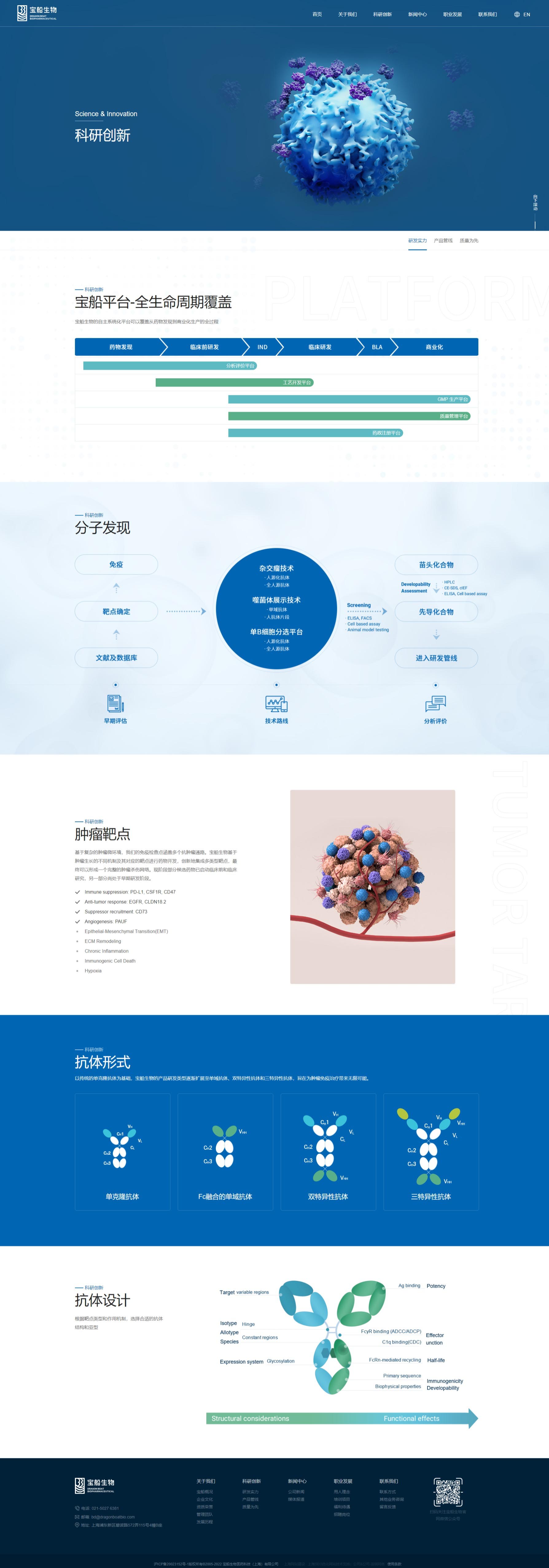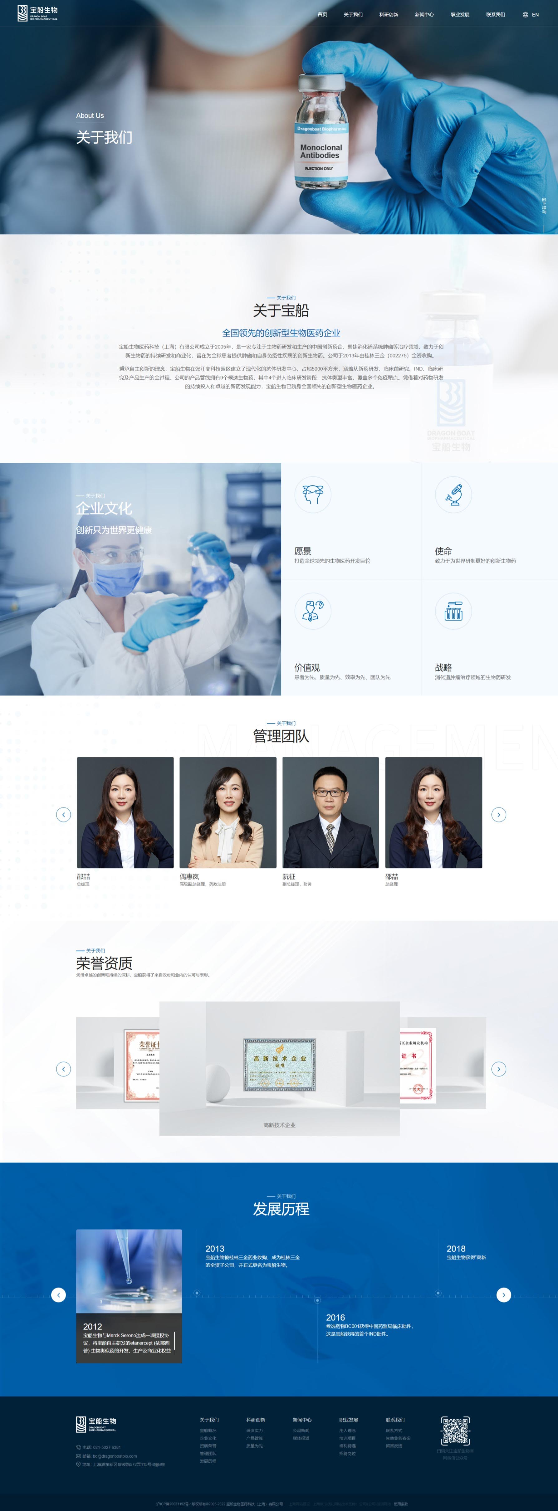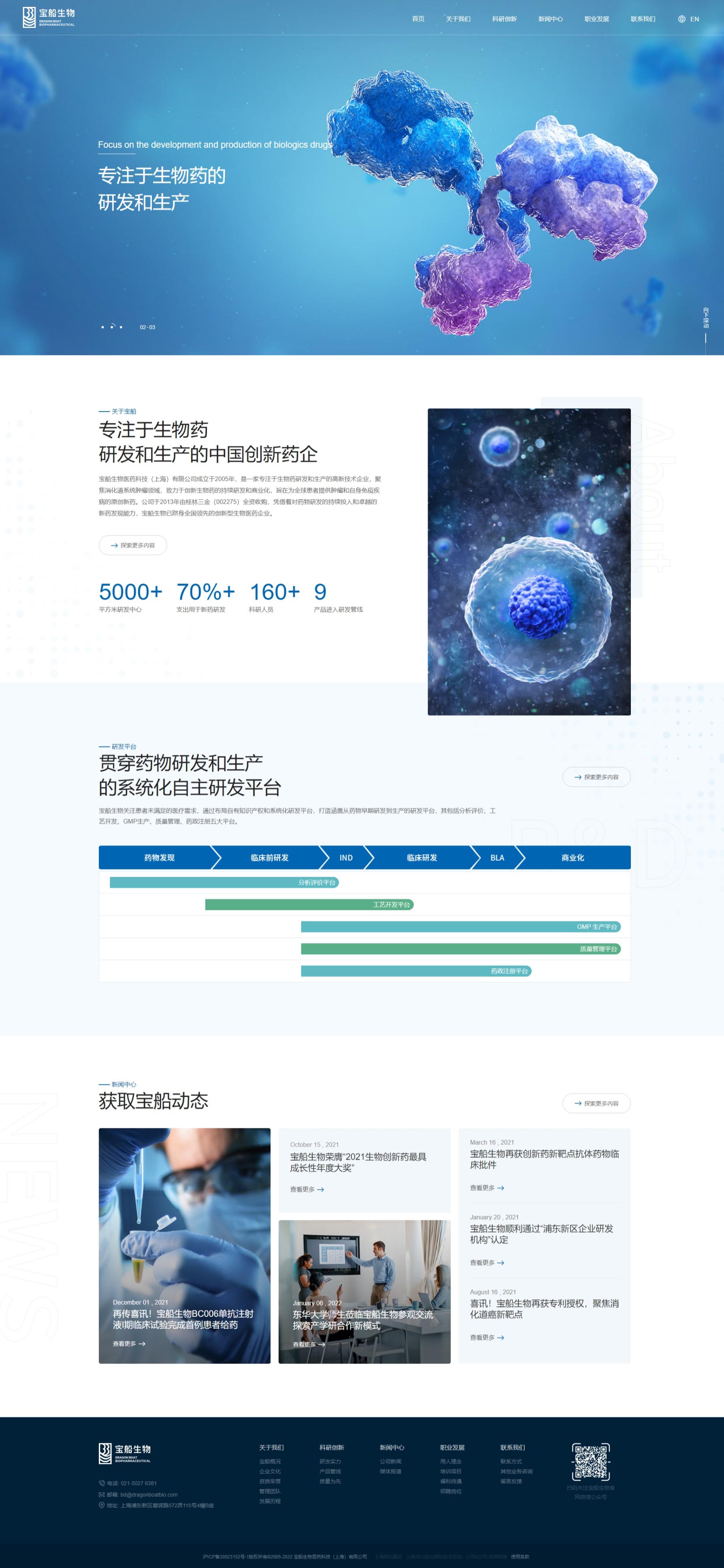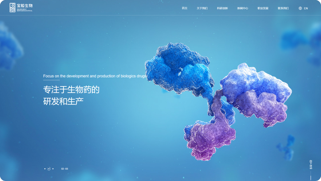 寶船生物製藥網站風格定位為“專業創新,溫馨信賴”。設計融合深藍色調,彰顯專業與穩重;現代布局與創意元素展現企業前沿創新力。溫馨關懷的內容板塊傳遞對患者健康的深切重視,增強品牌親和力。