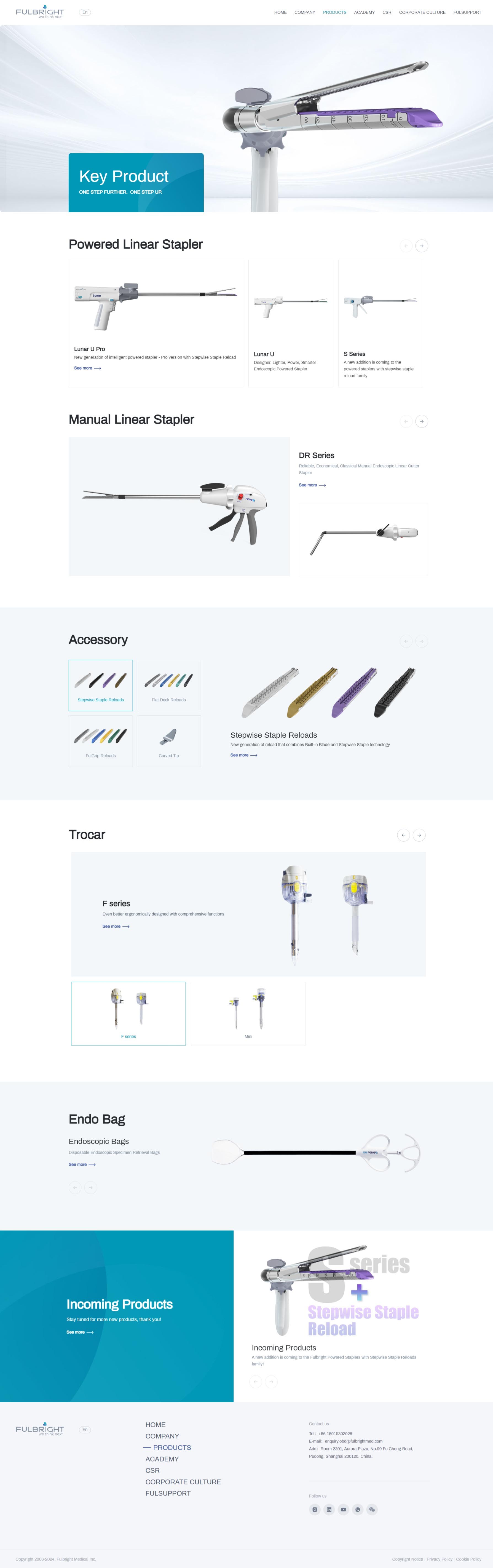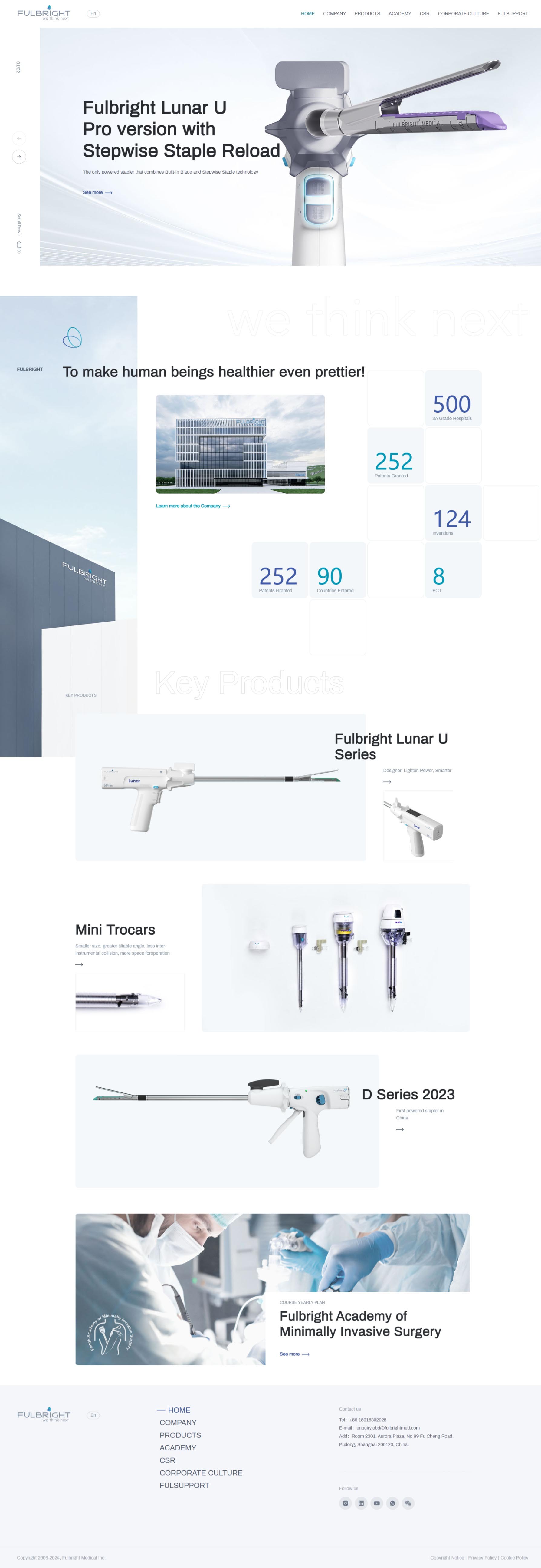 風和醫療器械網站設計精致,以白色為主色調,彰顯專業與穩重,同時融合淡粉色與黑色作為輔色,增強視覺層次與信賴感。白色點綴其間,提亮頁麵,保持清新活力。色彩搭配既體現了醫療行業的嚴謹性,又傳達了企業對未來科技的探索精神。