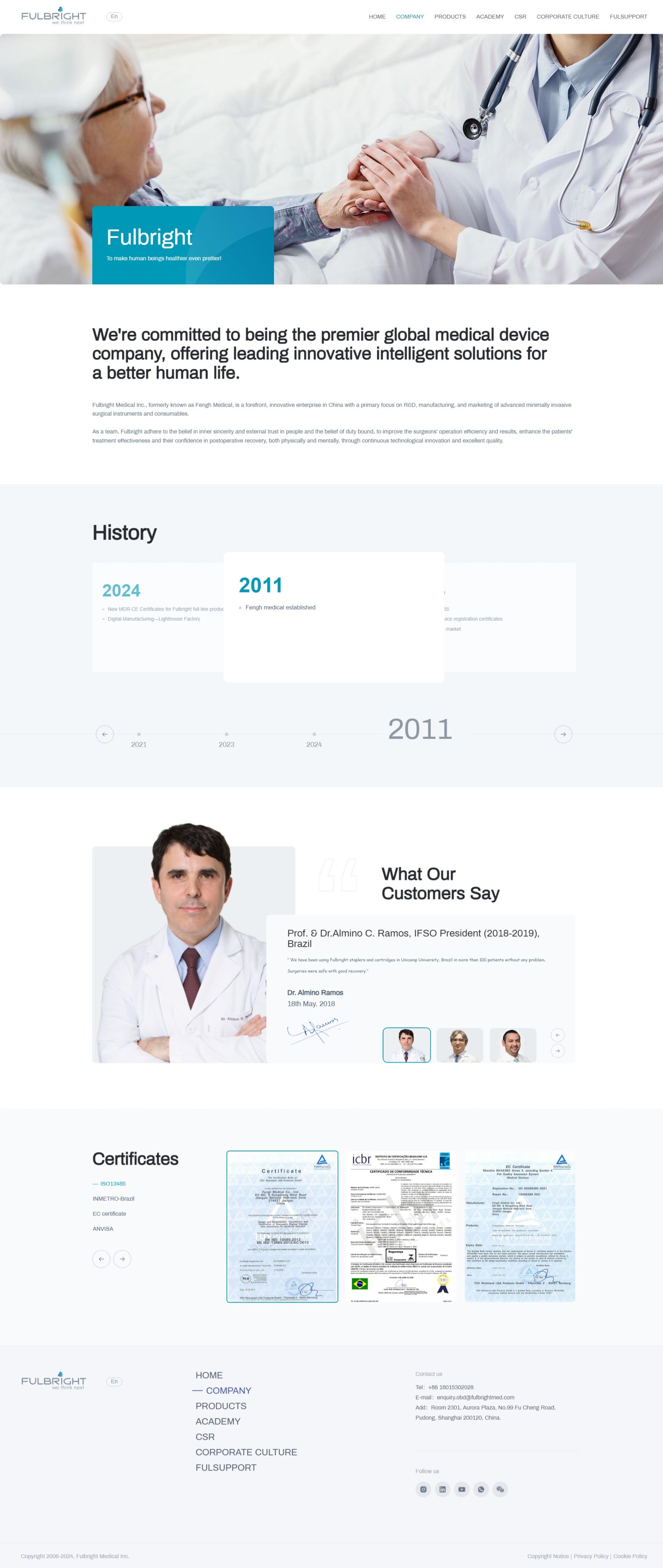 風和醫療器械網站在舒適性體驗上表現出色。它采用蒼藍為主色調,搭配深藍、黑色與白色,營造出專業且舒適的視覺環境。頁麵布局清晰,導航便捷,使用戶能輕鬆找到所需信息。內容呈現注重易讀性,提供高質量的專業信息。同時,網站交互流暢,響應速度快,確保用戶操作順暢無阻。