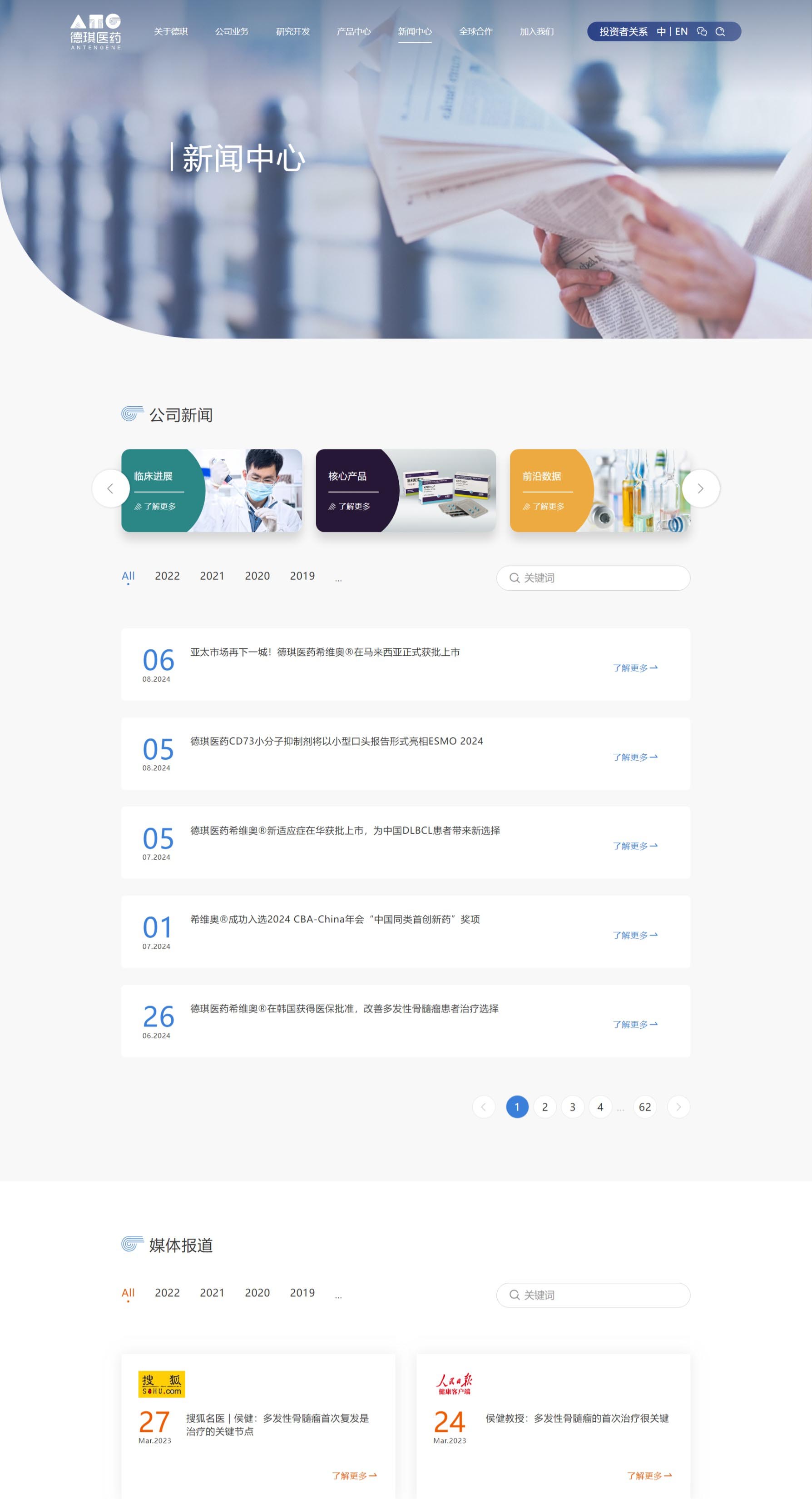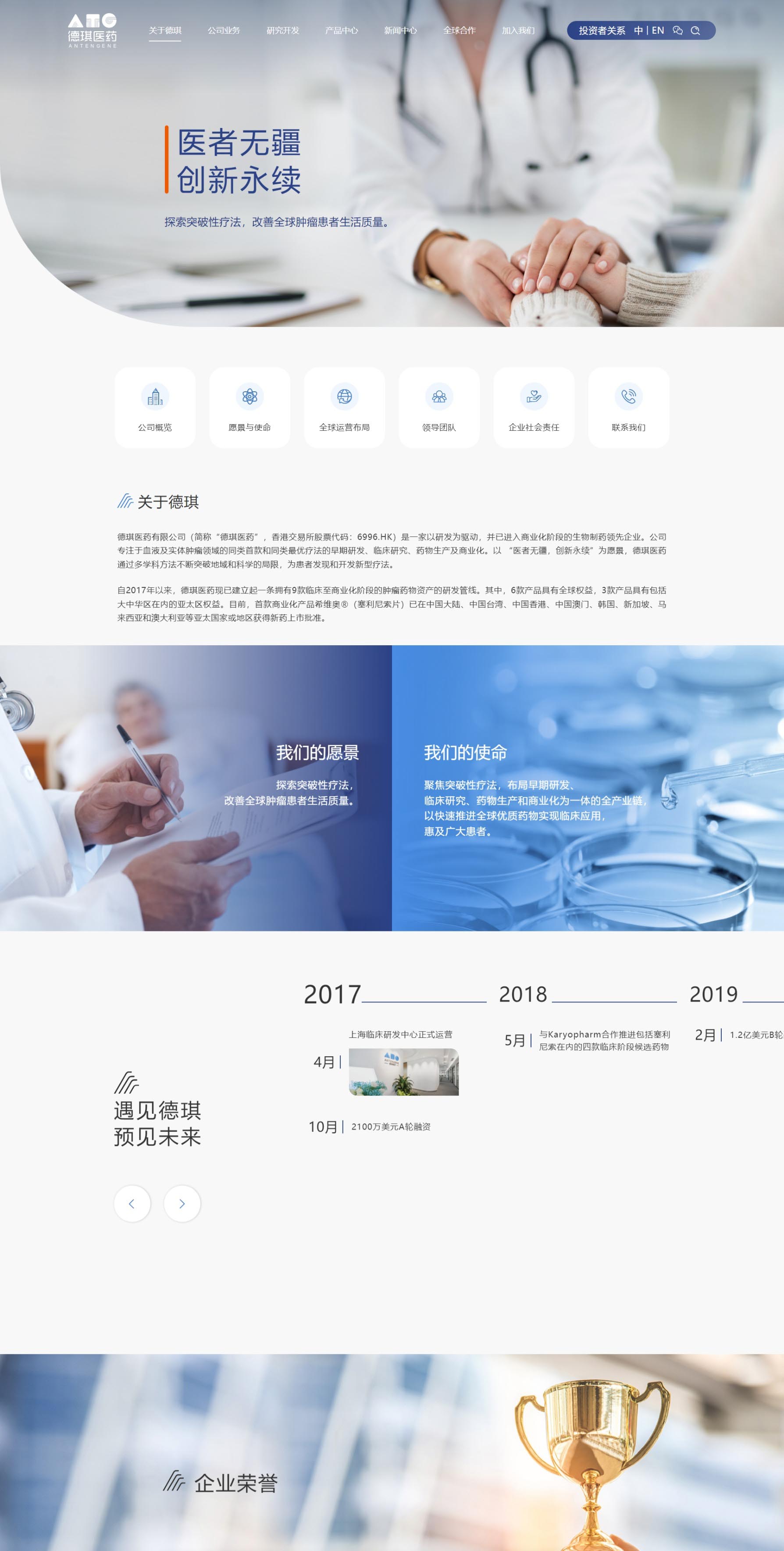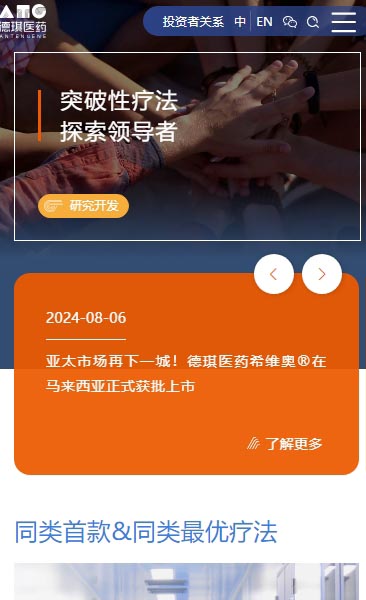 德琪醫藥官網全力為全球科研人員、患者及合作夥伴打造專業高效體驗。視覺上,以簡潔風格與科技色調營造嚴謹創新氛圍,布局清晰助用戶快速定位信息。內容豐富且實時更新,涵蓋前沿成果與科普知識,滿足多樣需求。通過便捷導航與快速響應,保障用戶瀏覽流暢。同時,官網注重與用戶深度溝通,分享研發故事傳遞正能量,針對不同群體提供專業谘詢與解決方案。整體從多維度優化,打造出兼具專業前沿與人文關懷的平台,彰顯其在生物製藥領域的強大實力與服務理念 。