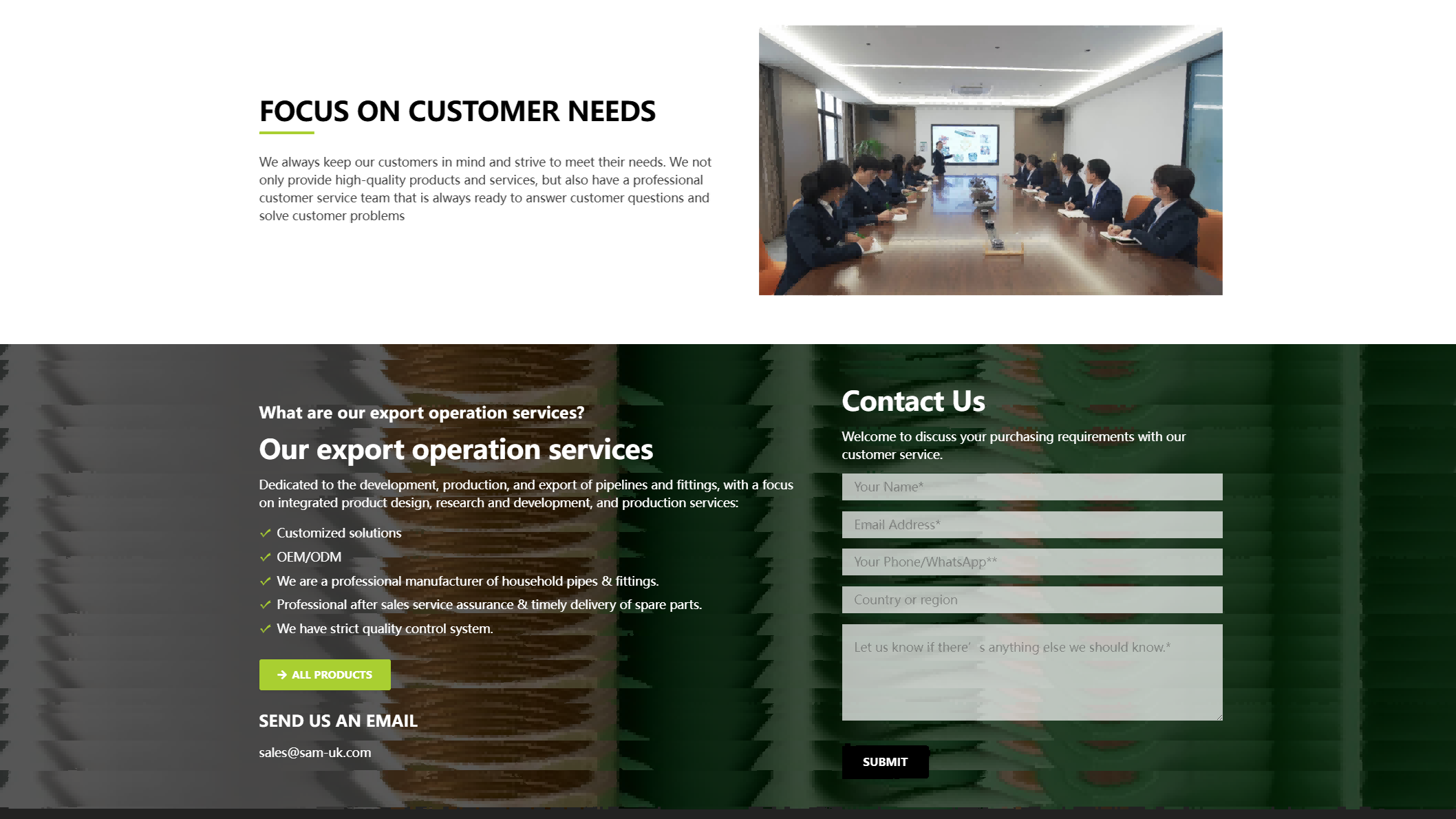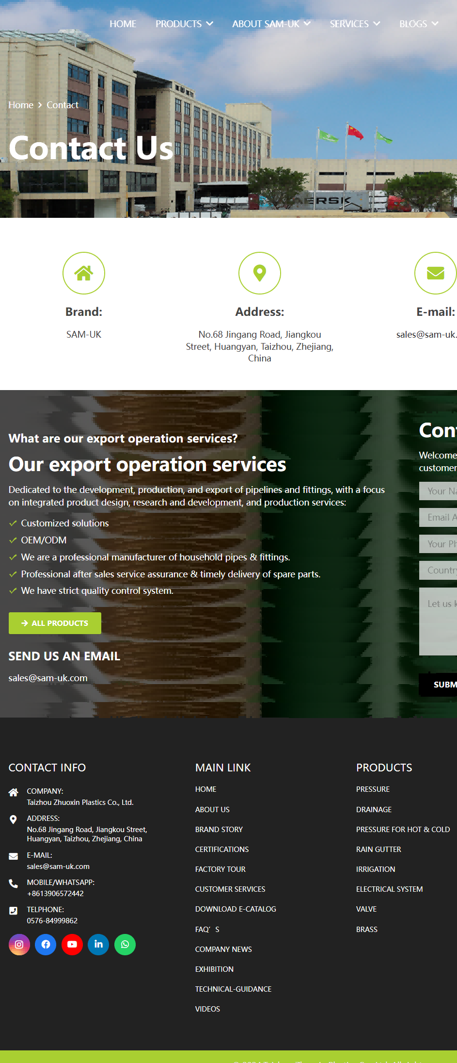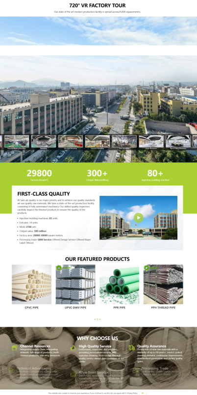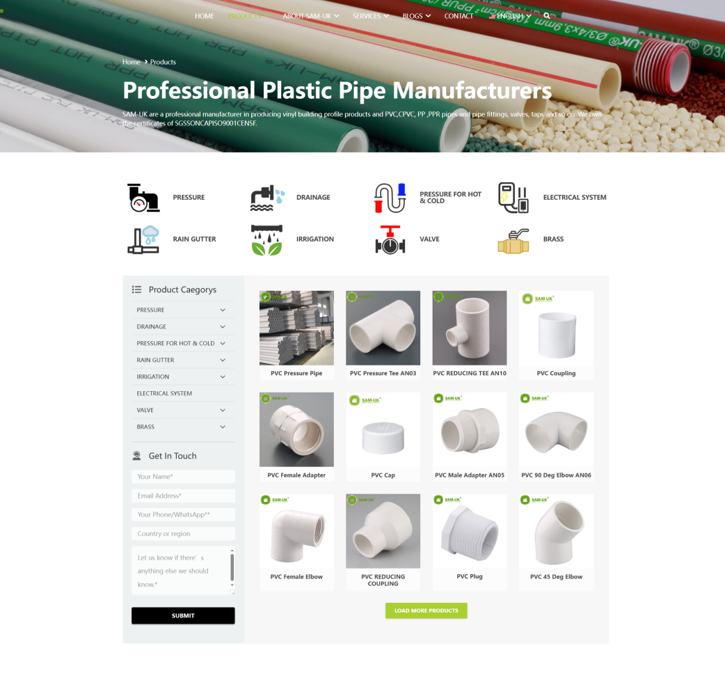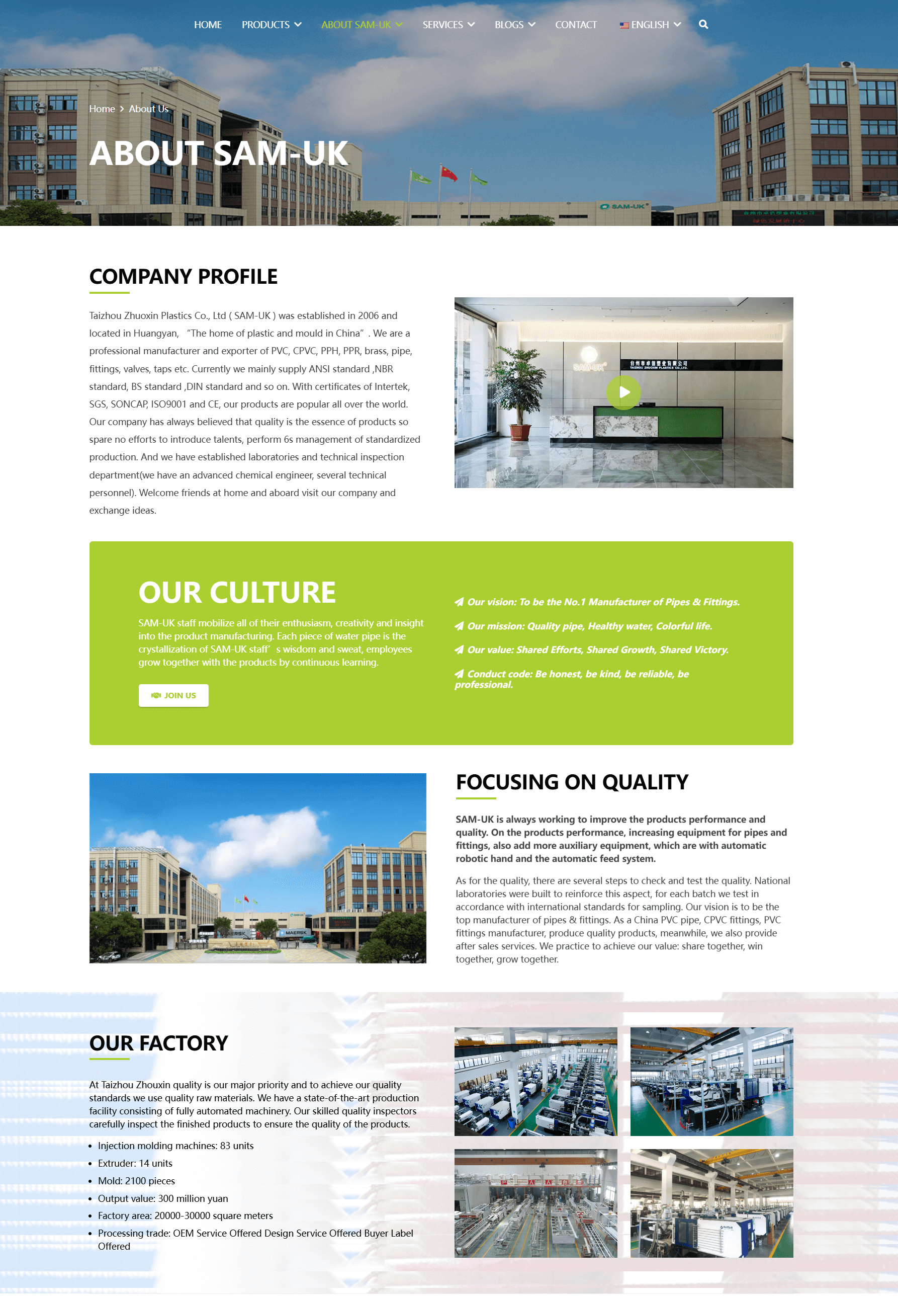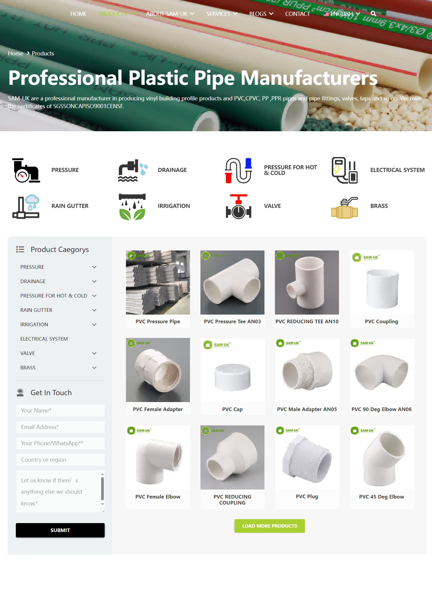 網站旨在全麵展示 SAM - UK 的塑料管材管件產品係列、強大的生產實力與優質的服務優勢。通過詳細的產品分類介紹、企業規模與認證展示、技術和售後等服務說明,向全球客戶傳遞專業可靠的品牌形象,吸引潛在客戶合作,為其提供管道係統解決方案,從而提升品牌在塑料建材行業的知名度與影響力,促進產品銷售與市場拓展。
