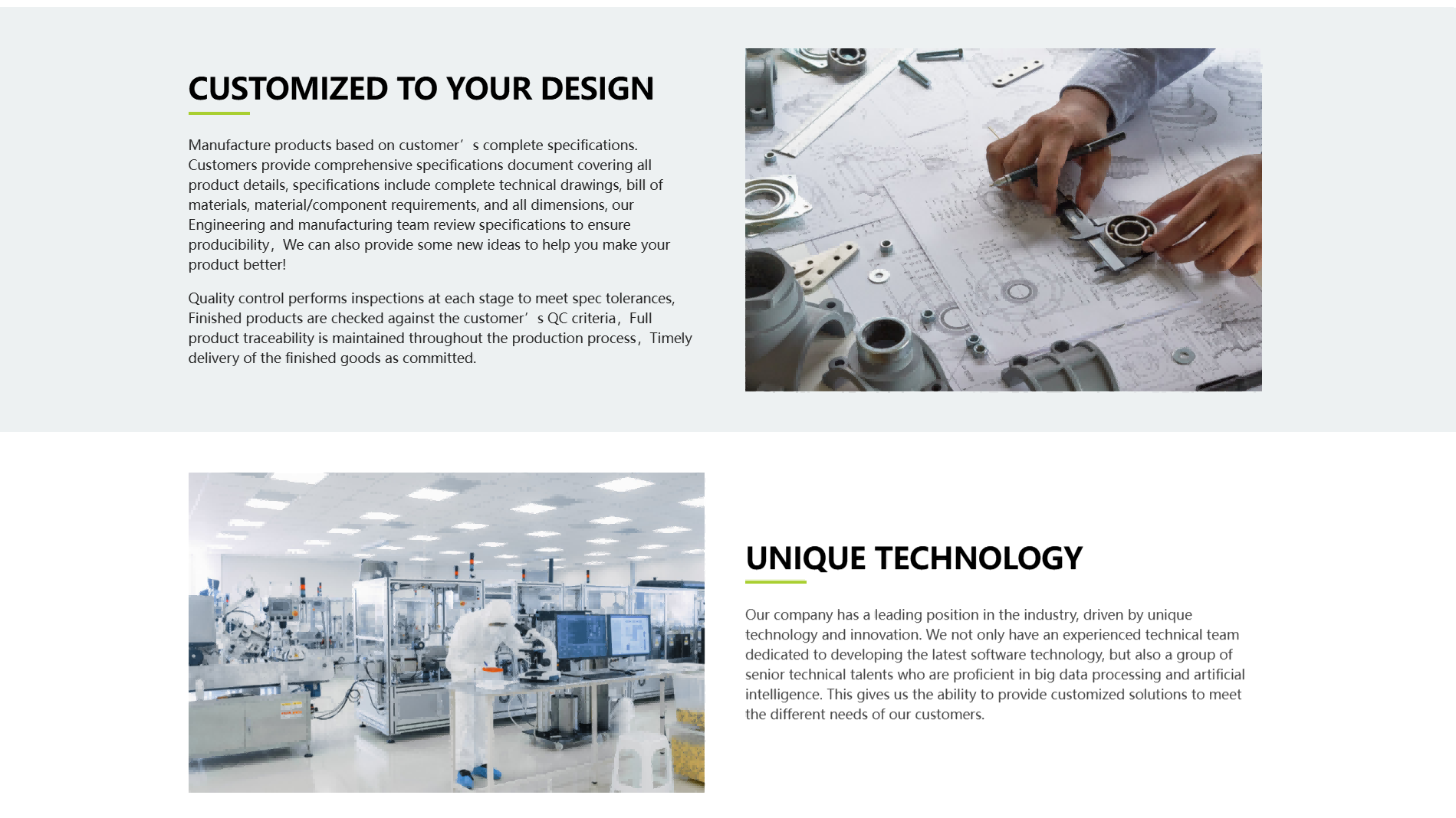 整體風格簡約專業、務實嚴謹。布局清晰合理,首頁以產品分類導航和核心優勢展示引導用戶深入了解。產品頁麵參數詳盡、文字簡潔準確,並配以圖片增強直觀性。整體設計圍繞用戶需求,突出產品品質與企業實力,摒棄過多繁雜裝飾,為用戶打造高效、便捷的瀏覽體驗,增強用戶對品牌的信任與合作意願。